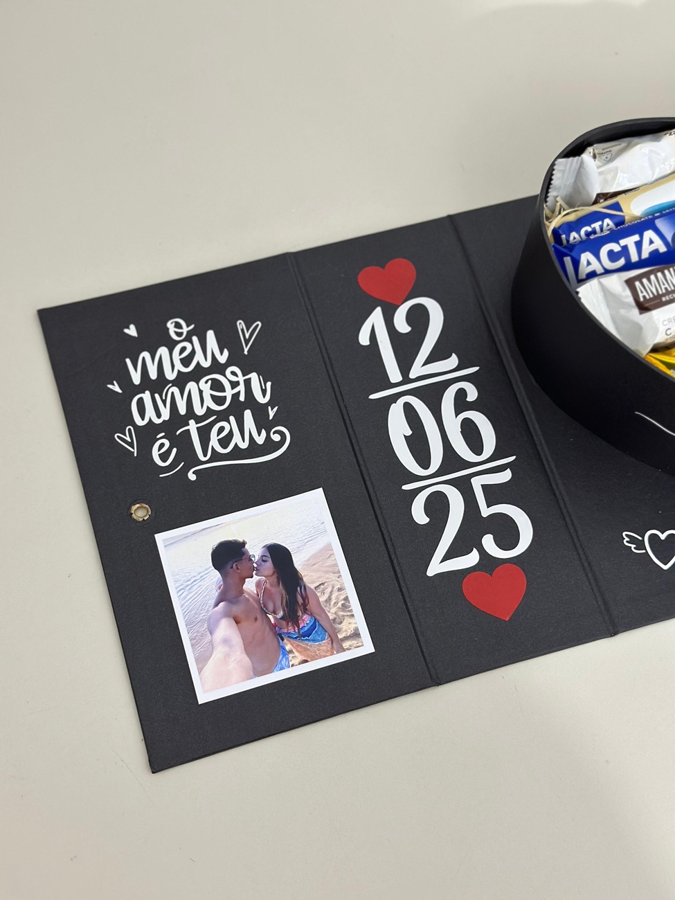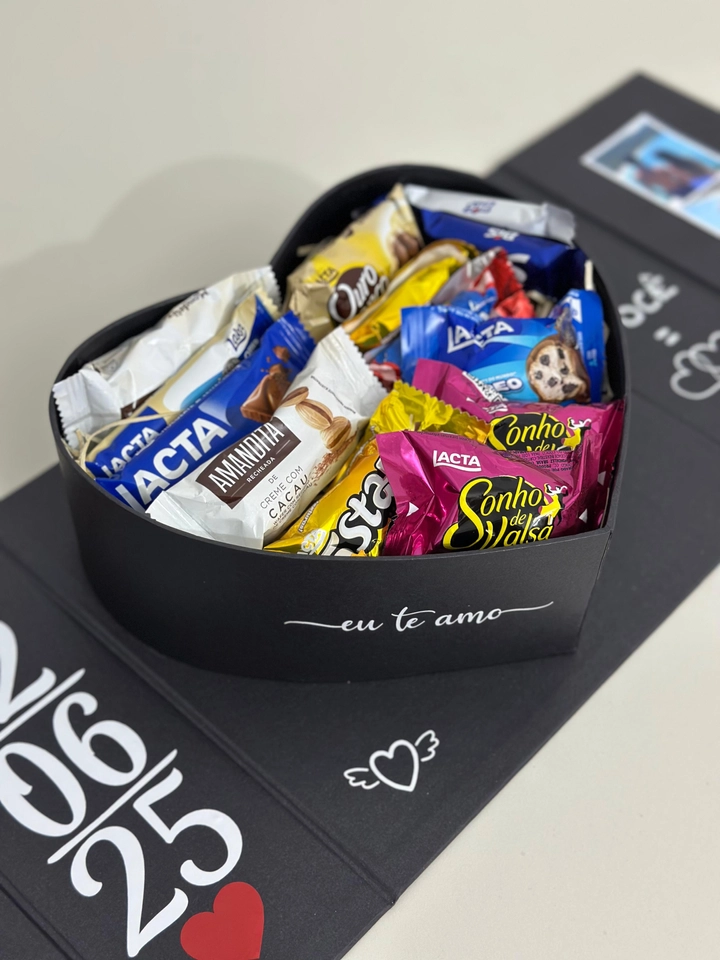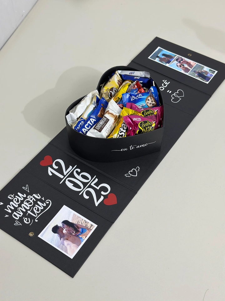 Essa elegante e delicada Box Coração Personalizado é uma declaração de amor em forma de presente. Ao ser aberta, ela revela um lindo coração recheado de chocolates irresistíveis e detalhes personalizados com fotos que eternizam os momentos mais especiais do casal.
