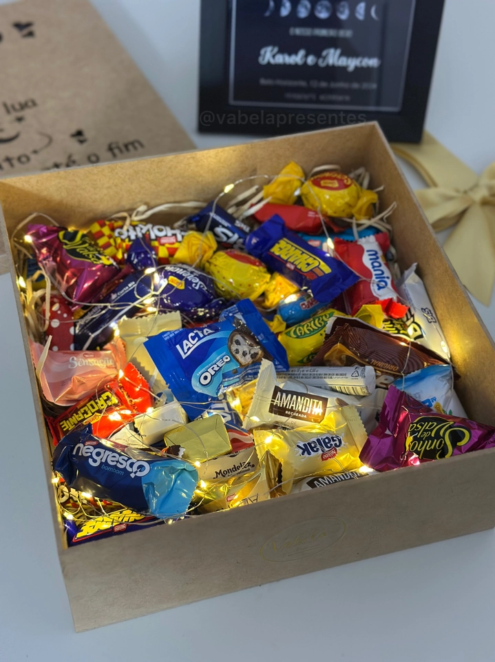 Uma experiência única que une romantismo, luz e sabor. Nossa box é composta por uma caixa em MDF vazada, com um sistema de LED interno que ilumina suavemente, fazendo a luz sair pela tampa e criar um efeito encantador.