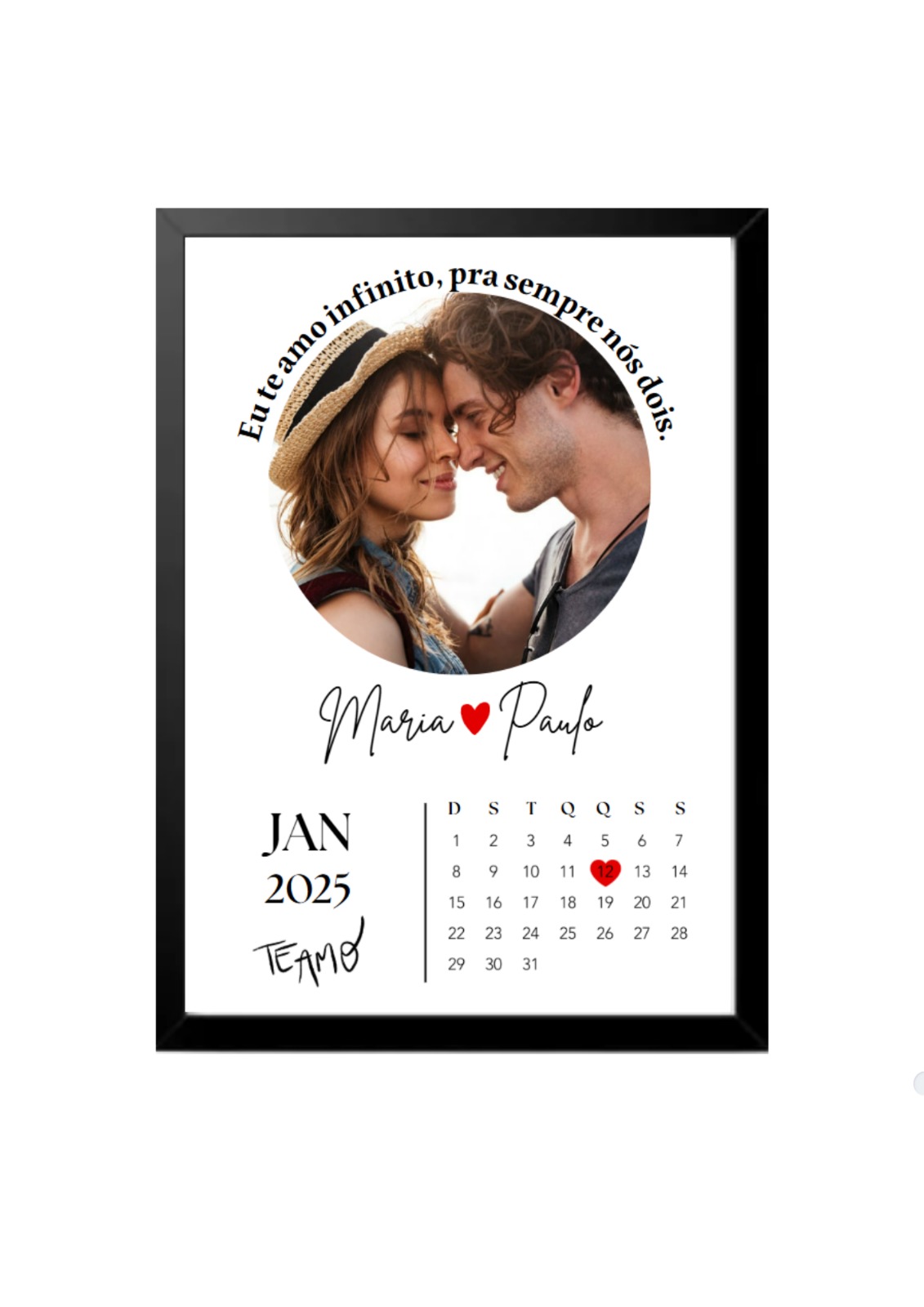 Quadro personalizado com uma foto e uma data importante, e o nosso calendário simula exatamente o dia que você escolheu.